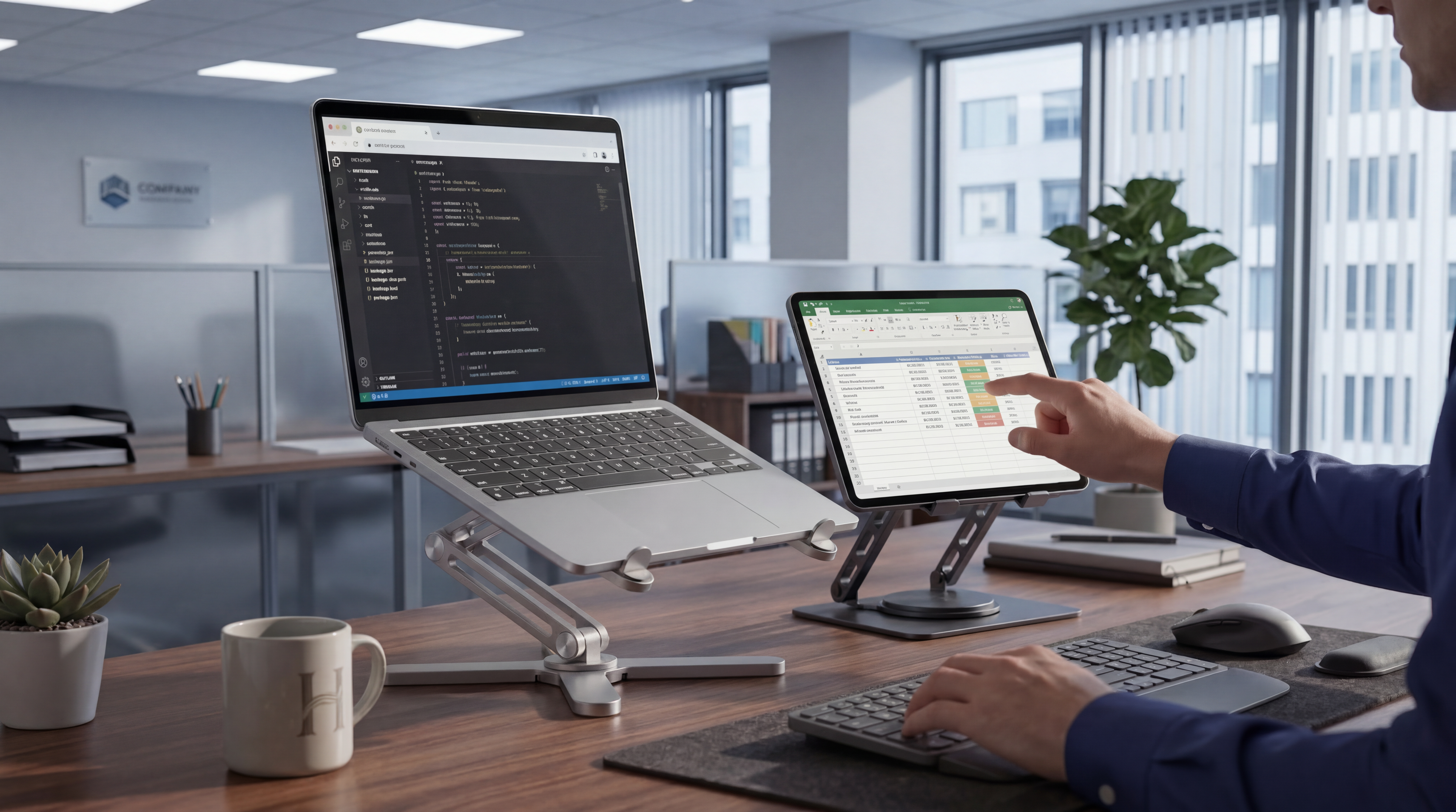 Ergonomic stands designed for laptops and tablets.